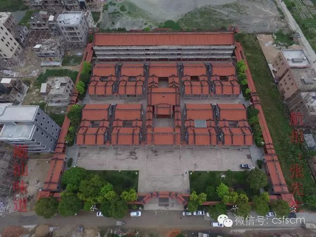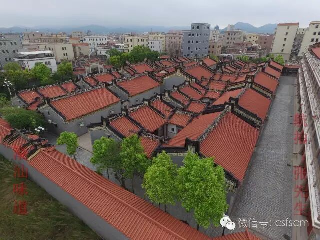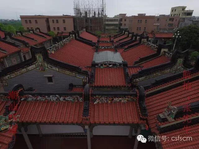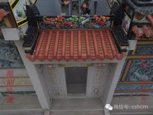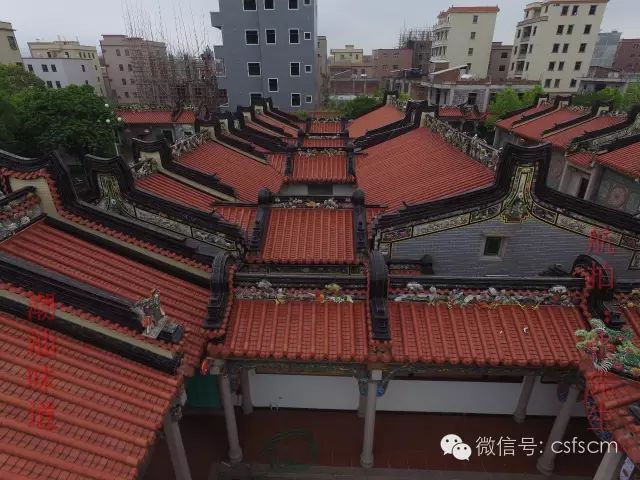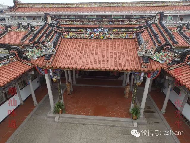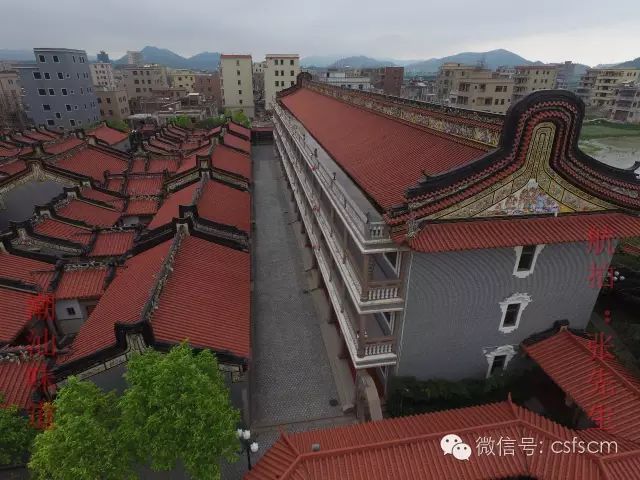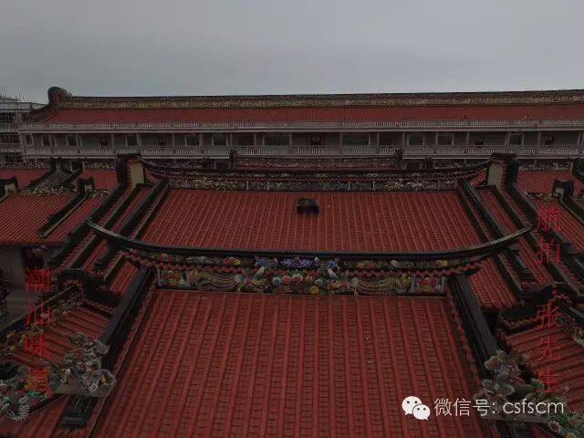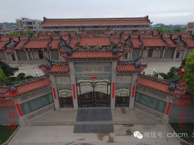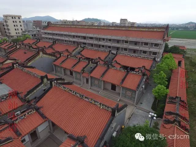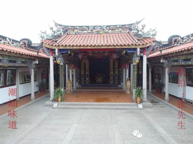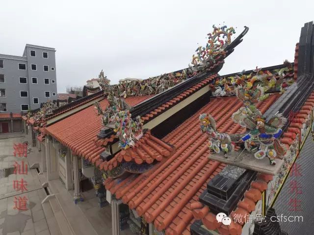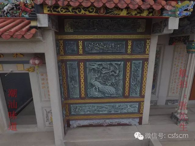 加上前、后、四周的祠堂大埕、石板通道、绿地花圃、长廊、围墙、大门牌楼、围墙四角配上四个更楼,庭院阔埕两侧建有“清扬室”和“陶育轩”两个书斋,整个布局和谐而完善,体现出潮汕古民居历来有“潮州厝,皇宫造”之说,“京华百姓家”之称。专家认定,谓曰“九龙吐珠”。