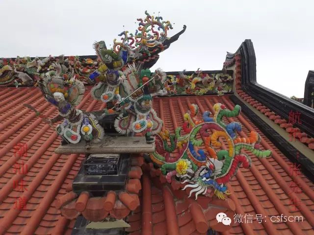 潮汕民居有一个突出的特点是极其注重装饰,荣德家园中的“祠堂”、“四点金”、“后包”,单是山墙的脊端,就有金、木、水、火、土五种不同的造型。造型优美的五星脊饰,连同山墙、屋檐都用瓷来镶嵌。