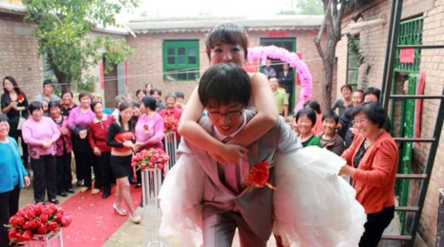 名牌化妆带婚纱,请司仪啊吹鼓手。