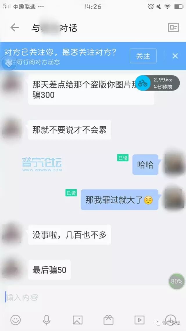 据霍女士称,最近,她的朋友告诉她,有陌生网友在网上盗用她本人的照片做色情交易,在朋友截的聊天记录里,骗子的头像居然是自己的照片,这让霍女士吃惊不已。骗子表示,开房的最低消费是300元,转300元就告诉住宿房间号。霍女士的朋友为了从骗子那得到更多信息,就先转了50元给骗子,但骗子称钱数不够,不愿再提供消息。最后,霍女士的朋友没有再给钱。