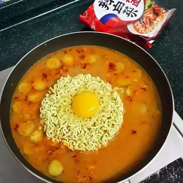 还有煮泡面的时候,你发现了吗?泡面饼的一面是凹进去的,刚好可以放两个鸡蛋!