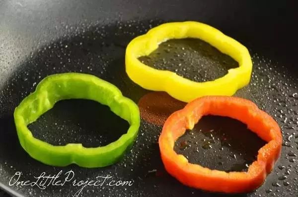 还有一种方法就是直接用彩椒圈,只需在锅里撒几滴水就可以了。