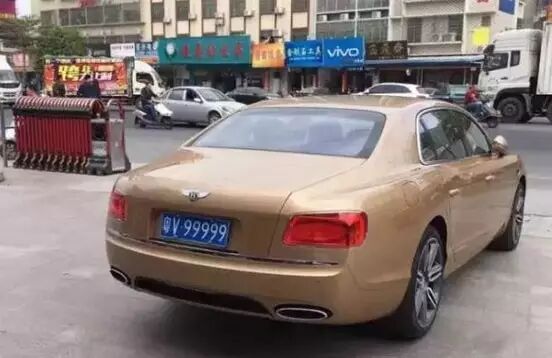 说到这幅天价车牌,不少吃瓜群众也很关心,车牌最后会装在哪辆豪车上?而今天,小编在微信群里看到,阳美玉都展销中心那里一辆宾利上赫然装着这块天价车牌。