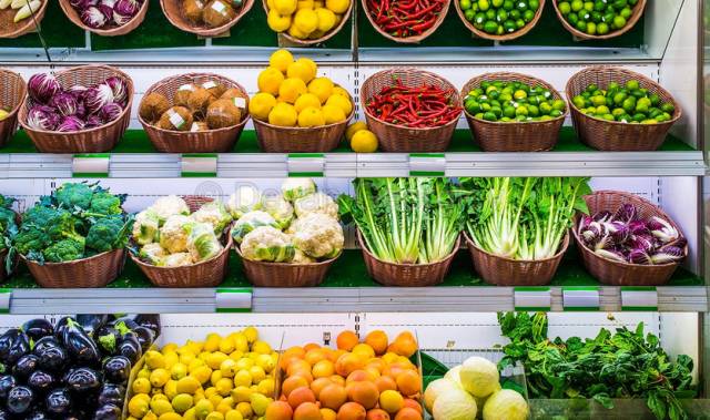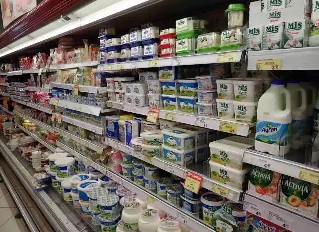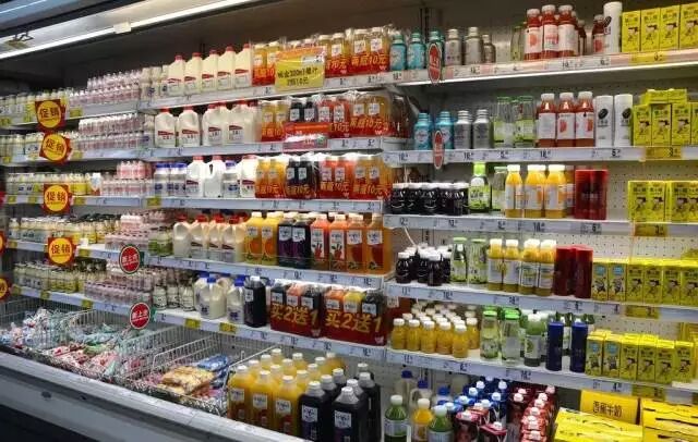 超市摆放牛奶、酸奶等冷藏柜食品时