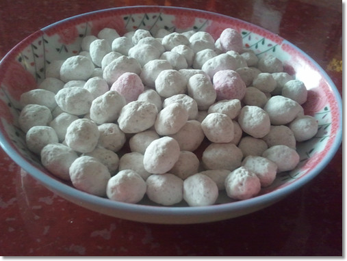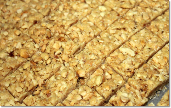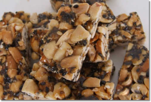 为普宁大长陇陈广泰店创制,该号现衍传5户。制时精选花生仁,先用油炸,熟后加白猪肉丁于平盘上,后用麦芽糖、白糖加猪油熬“苷”,浇在花生仁和肉丁上。