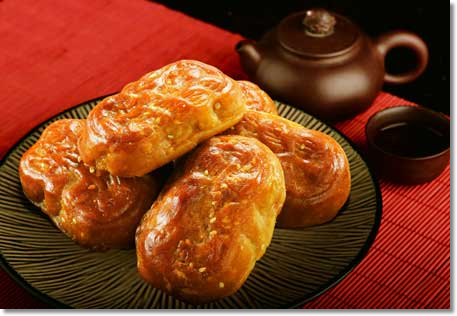 以绿豆猪油作主料的称为绿豆沙烙饼,以红豆沙加明矾和猪油为主料的称为乌豆沙烙饼;以水晶和乌豆沙同作馅心的,称为双烹烙饼。