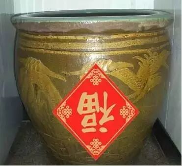 福字倒贴的第一种情况是水缸,垃圾箱,和家里的箱柜。在水缸和垃圾箱上,由于水缸和垃圾箱里的东西要从里边倒出来。为了避讳把家里的福气倒掉,便倒贴福字。这种作法是巧妙地利用“倒”字的同音字“到”,用“福至”来抵消“福去”,用来表达对美好生活的向往。