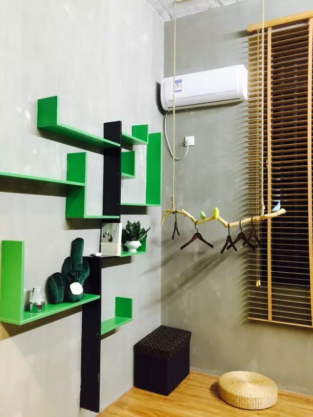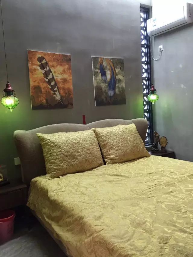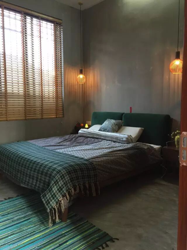2楼客房,水泥色墙面配上我们家志达床效果不错。也是配上我喜欢的墨绿色,醉了...