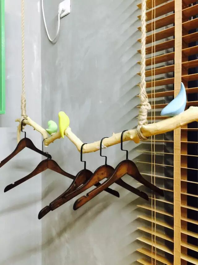 女儿房间的衣架用麻绳与干枝做成,使空间更宽更有趣!