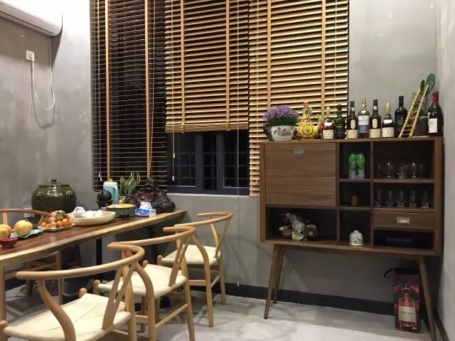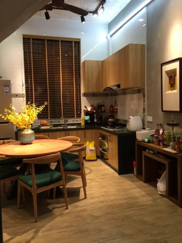 一楼餐厅,为了搭配整体色调把餐椅垫改成墨绿色。