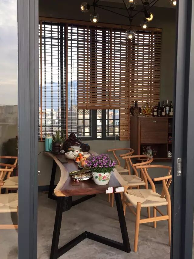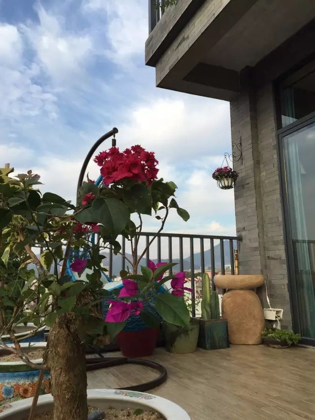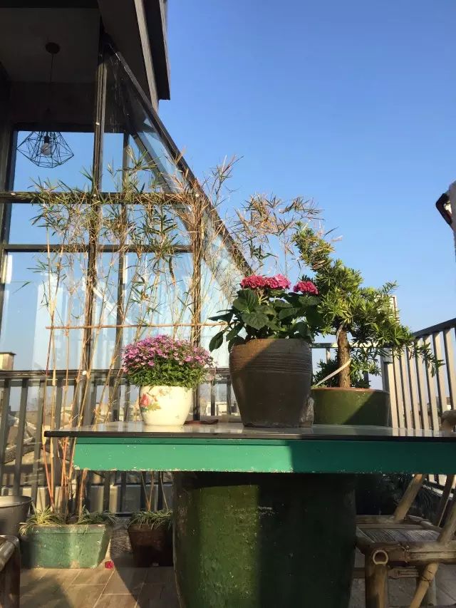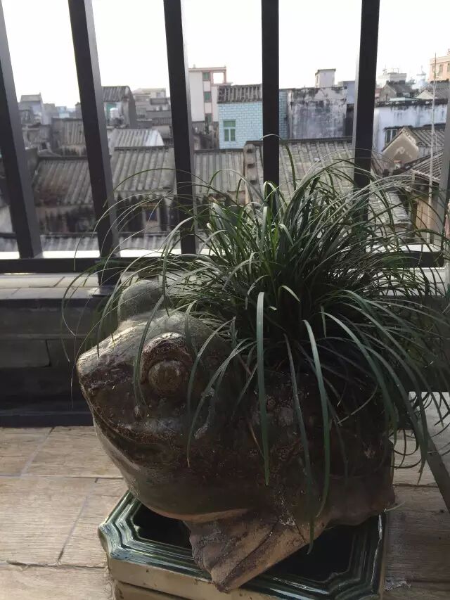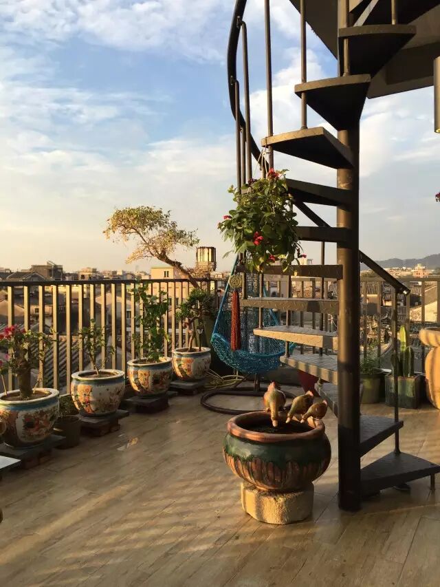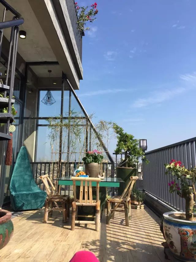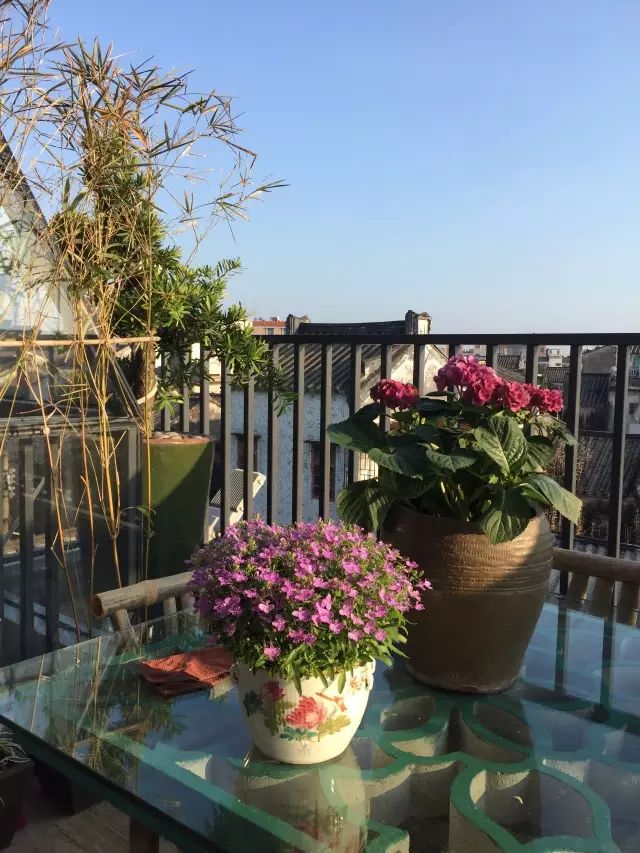 3楼小阳台的休闲茶桌!用老式的竹椅配茶台是水泥通花做成的台面,是不是找到有儿时感觉。