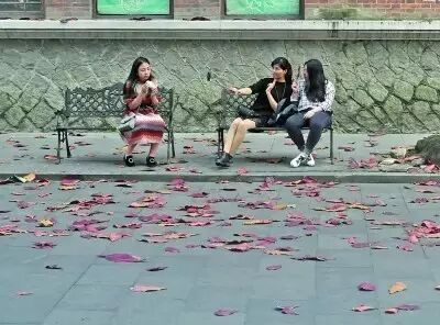 ▲在铺满落叶的街边,独处或是相聚,都是妙不可言。