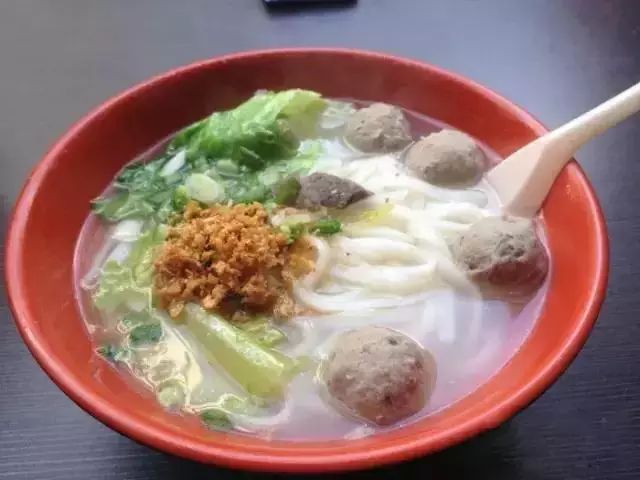 牛肉丸粿条汤没有牛肉丸的潮汕人,还何谈过日子。将煮好的粿条和牛肉丸盛入碗里,泼上浓汤,放上几片生菜叶,撒上菜蒲粒,即可食用。