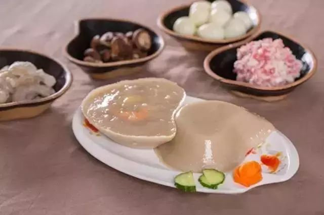 鲎(hou)粿因为粿里掺了鲎汁称为「鲎粿」,吃之前是桃型状,看起来也很是迷人,清晰可见里面有虾仁和鹌鹑蛋。说实话,这一碗分量还真不少,要不是空着肚子,完整一个还吃不完呢。