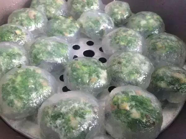 韭菜粿韭菜粿当然是韭菜是主料。 皮的制作有两种:一种是雪白的粿皮料;另,一种是晶莹透亮的粿皮料。晶莹透亮便叫做水晶球了。