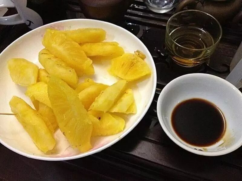 吃菠萝、杨梅一定要蘸点酱油,吃西瓜,一般会淋冷盐水,即可杀虫又能下火。