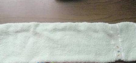 2、找一块布,然后反面对折成为一个长度约为 50 厘米、宽度约 20 厘米的布袋。封好以后,再反转到正面,这样不会漏豆子。