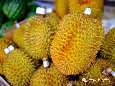 会挑榴莲的人,还有一个聪明的办法,就是看这个“狼牙棒”外面鼓起来的“小山”,平缓而微隆的“小山”中,正是香甜芳香的果肉,“小山”越多,当然就是果肉越多啦!