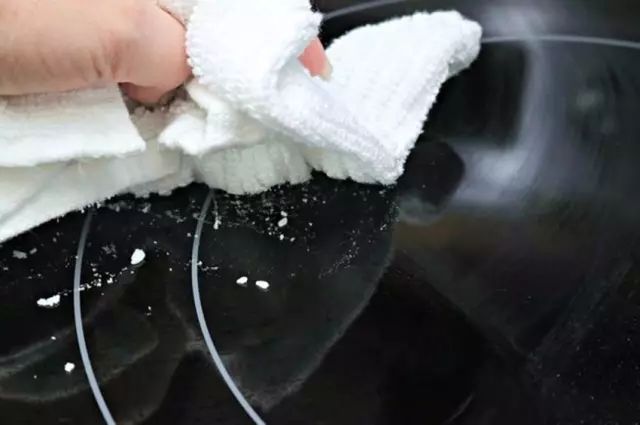 2、适当地在小苏打上面撒一点醋,不要过多,再用毛巾擦洗;