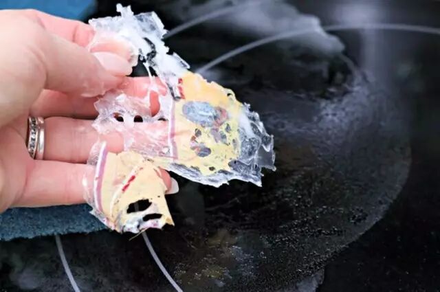 4、让混合物静置30秒,这有助于清除炉面上的塑料纸;