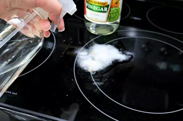 小 贴 士 食醋可以软化掉附着在燃气灶上的食物残渣,小苏打中含有的碳酸氢钠在去除污渍的同时,还有除菌作用,两者一同擦洗效果更好。