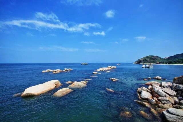 巽寮湾十分有名气,海水质量在广东算数一数二的洁净,每到周末都十分热闹。你可以沿着白色沙滩漫步,体会悠闲的心情;可以在沙滩上捡贝壳、晒太阳;还可以参与特色的出海捕鱼。
