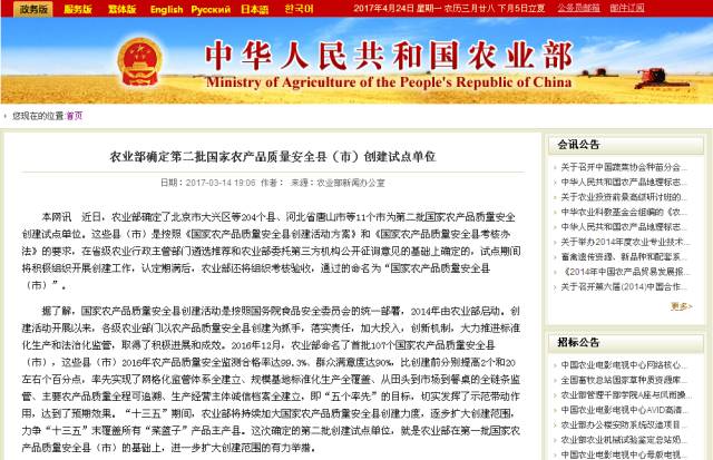 (国家农业部官网截图)