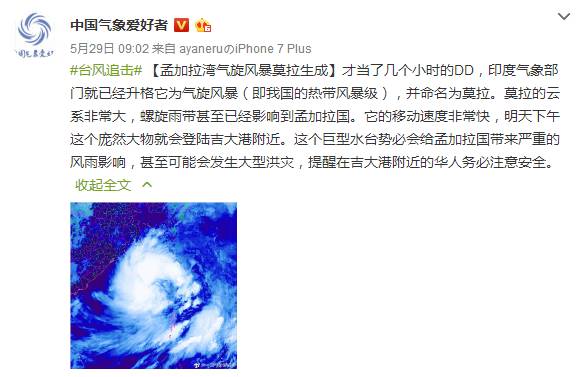 孟加拉湾气旋风暴莫拉生成