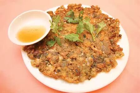 不同于一般的蚝烙,地瓜粉放得极少,单纯地突出了蚝的爆浆感,因此被誉为蚝珠。