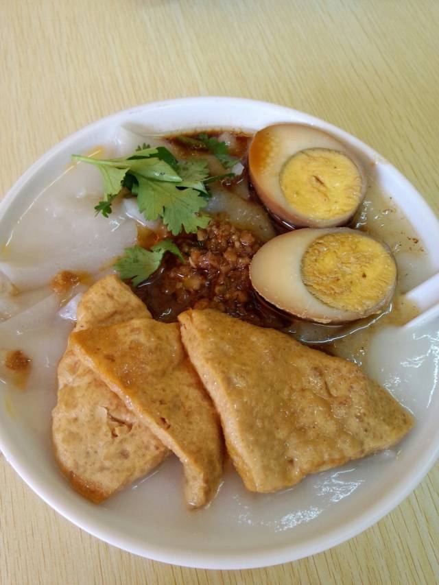 粿汁是潮州小吃之一,叫一碗热腾腾好像粿条般滑口的粿片,淋上浅棕色的卤汁,再点些卤猪肠、卤肉、卤蛋、豆干或菜尾等,这就是粿汁了,粿汁要趁热吃,非常爽口,越吃越有味。