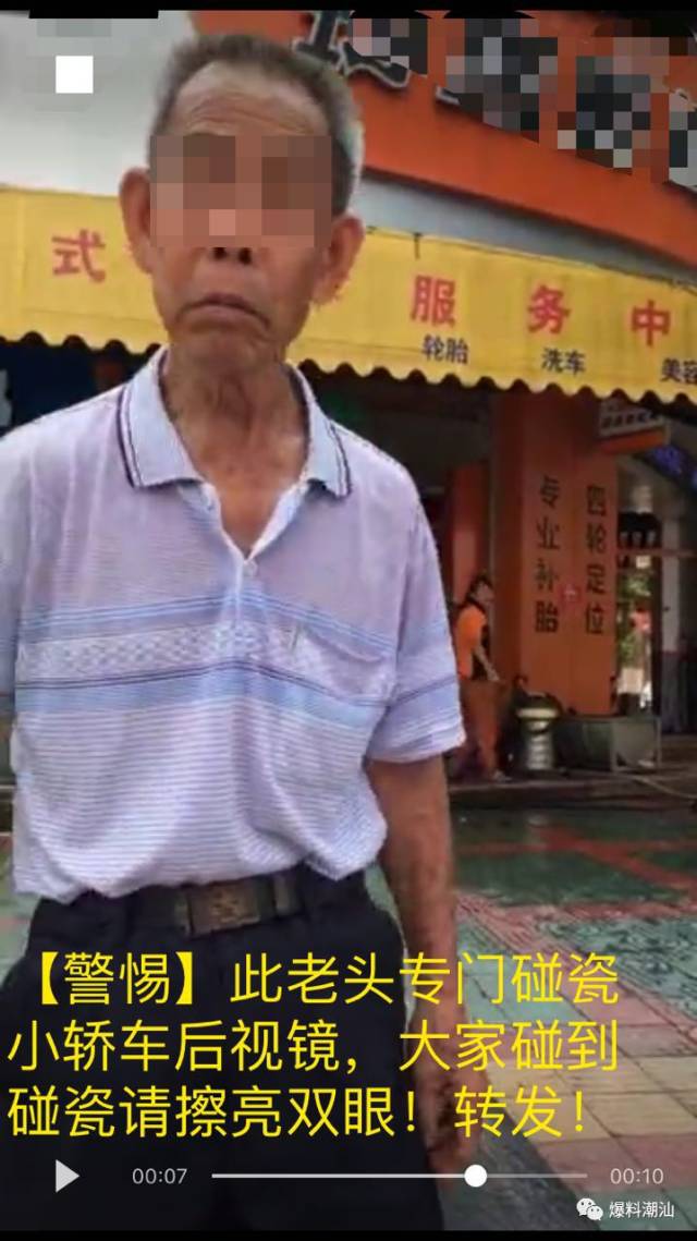 各微信群都在疯传这个视频:在揭阳东山金城龙庭、二号路三号路周围,有一个老人疑似经常出来“碰瓷”,而且态度嚣张,专门撞汽车后镜,向车主索要赔偿,被广大网友识破,以下是网友发来的视频:
