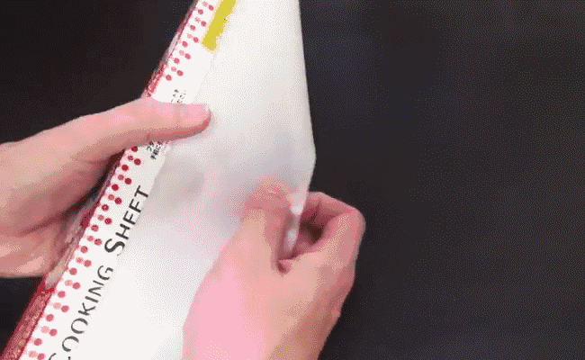 将芝士片放在油纸上,切成小块,放入微波炉叮90秒,取出来后你会发现表面变成是金黄色,直接当小零食酥脆又香口。