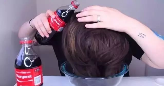 用一瓶恒温状态下的可乐洗头,配合洗发水使用。再用清水冲洗干净,能让秀发更柔顺。