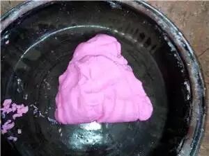 1:用一个锅把清水烧开,放入粘米粉搅拌直至成糊状,盖上锅盖焖10分钟左右。然后倒出来放上粿红和木薯淀粉,搓成团!