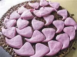 红桃粿,潮汕地区传统的小吃,原料极其简单朴实,红桃粿的馅一般为糯米或者芋头,有时也加菜脯。凡时年八节,几乎家家产户都要做桃粿、酵粿、白饭桃。桃粿、酵粿做完后,要放在祖宗灵位前祭拜,白饭桃则只是拿来吃,那是因为潮州人认为红色是吉祥如意、好意头的象征,而酵粿在制作过程需要发酵,故取其“发”的好意义。
