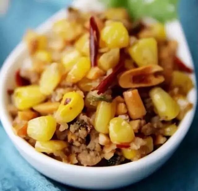 2:把萝卜干剁成粒,和花生拌在一起,做成馅料,想要香一点,还可以把馅料炒一炒!