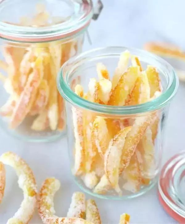 把橘子皮洗干净之后,切成细小的幼丝晒干,密封贮藏。