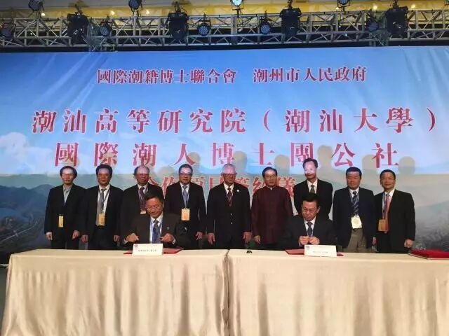 随后,国际潮籍博士联合会与潮州市人民政府双方在全世界潮团侨领和代表的见证下举行了隆重的潮汕大学和国际潮人博士团公社合作项目签约仪式,获得了阵阵掌声!