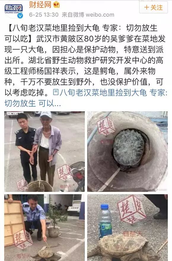 不过,小编在这里提醒大家,如果看见这种鳄龟,一定不能选择放生,因为放生鳄龟这种行为明显可能危害到社会的行为,因为鳄龟非我国本土物种,食肉,生长迅速,水域中几乎没有天敌。一旦随意放生,对生态环境可能产生巨大危害。细想想,这跟买一头狼放到羊群里有什么区别?也有专家表示,鳄鱼龟有药用和食用价值,也可以吃掉。