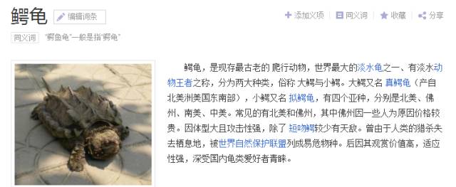 小编在网上查找资料发现,这只乌龟很有可能叫鳄龟。
