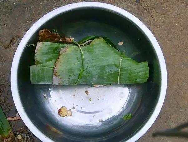 新采下的芭蕉叶洗干净,准备包鸡用,一定要用新鲜叶子。