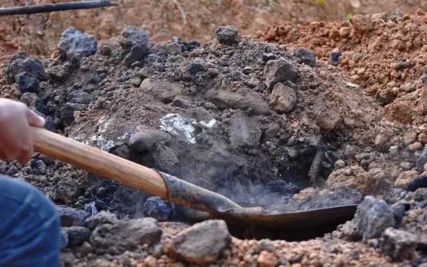 开窑咯。刨去窑泥,红薯的焦香扑鼻而来。