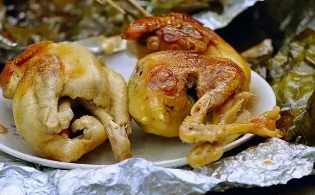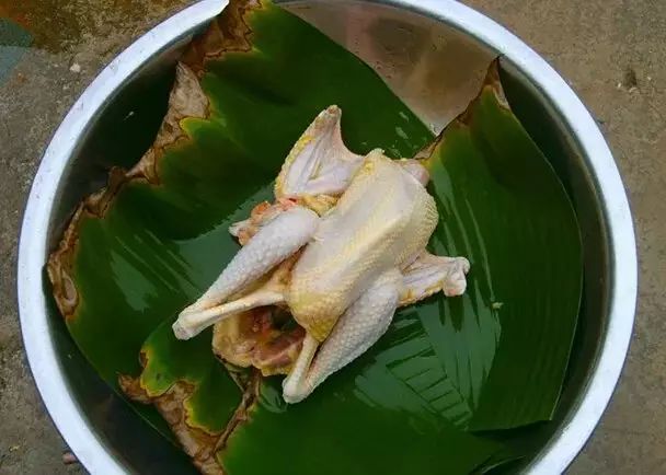 如果有新鲜的荷叶更好,没有芭蕉叶或荷叶,也可以用新鲜竹叶代替,目的都是为增加窑土鸡的清香味。