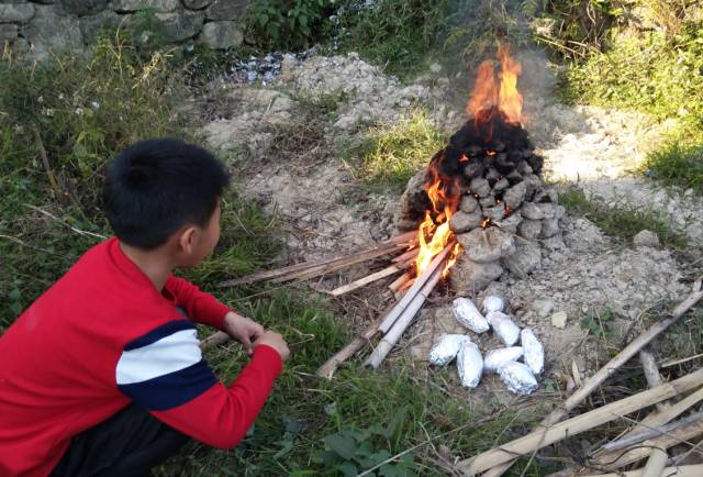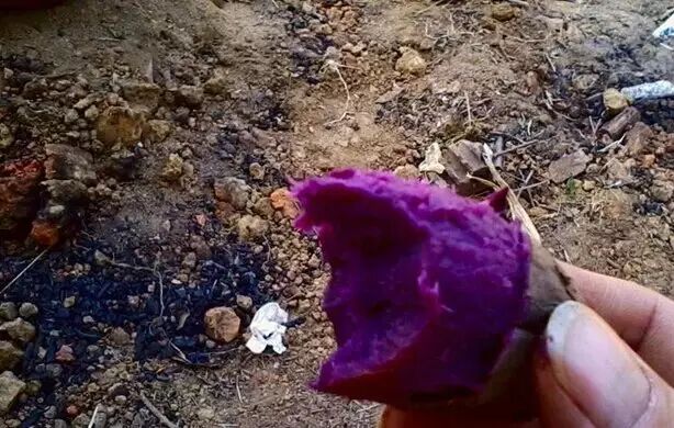 先把烧红透的泥块敲碎,盖住红薯,外头再加一两层新泥密封,不让热气冒出来。开心归开心,但可不要用力过头,往死里砸噢。不然,开窑的时候,就杯具了。呵。。