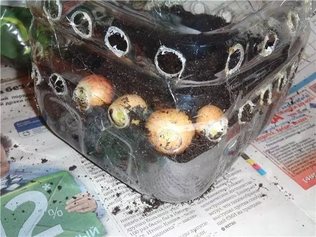 6.种好后,浇透水放在散光通风的地方,洋葱(大蒜)逐渐发芽了!