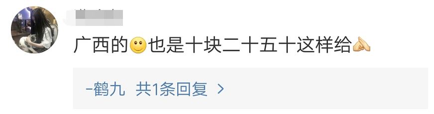 @英俊如我展大傻V:我们这里,一个红包一千不能再少,基本都是两千三千的收,再大点儿的给一万都有。不然那些人会觉得自己很没面子。