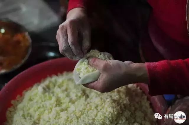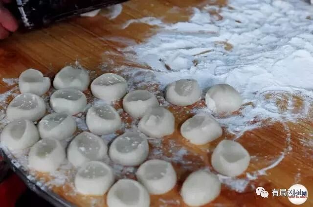 再将团块分成小块,捏成圆饼,中包粿馅,馅有咸、甜、双烹数种。甜馅有红豆或绿豆加糖制成豆沙