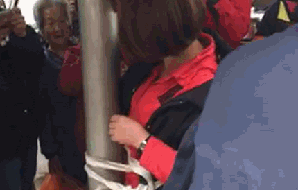 村民是相当的愤怒,但是还是明智的,只是把女子绑在柱子上面,并未打她。