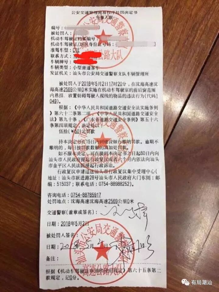 证实了该图为现场处罚单