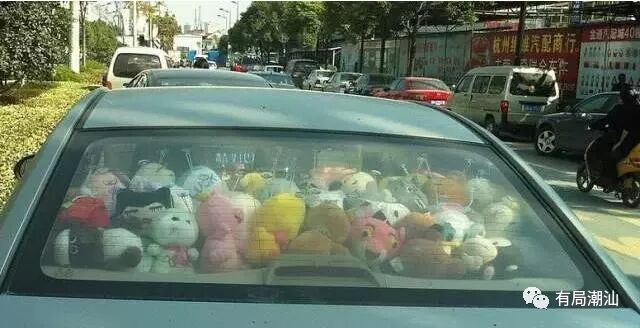 2、后窗边上的毛绒玩具